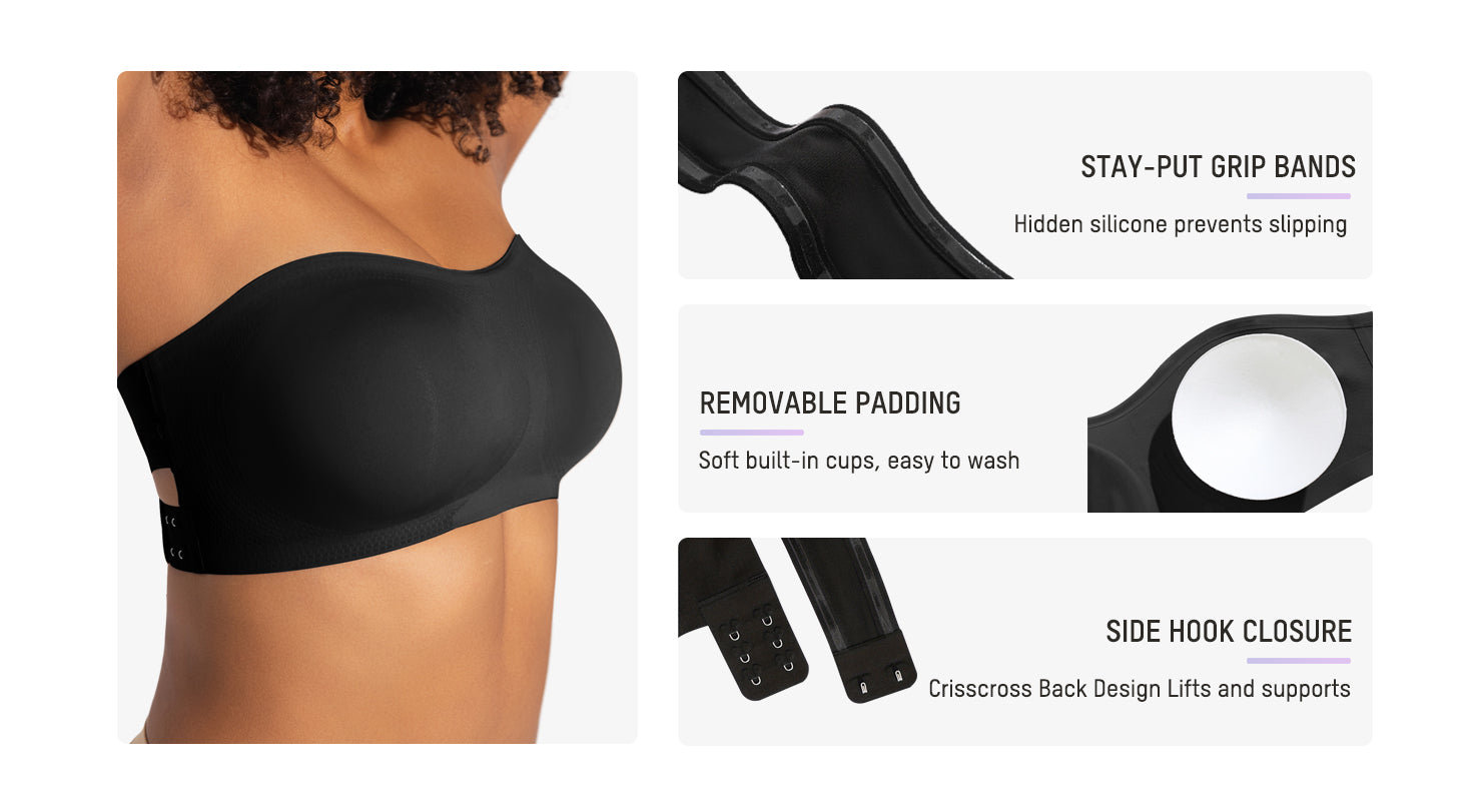 • Non-Slip Crossover Side Hook Bandeau Bra