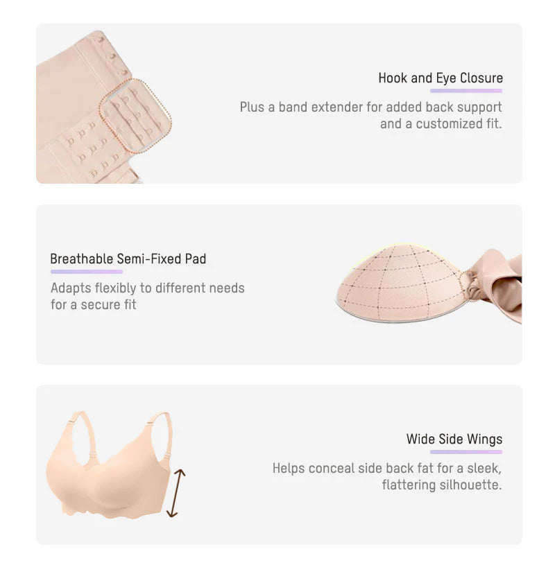 Back Smoothing Bras - The 3D breathable cup shape perfectly fits the chest, making your breasts look more rounded and upright. The semi-fixed cup design reduces the flipping or shifting of the cup pad during washing, facilitating the adjustment of the breast pad after washing.