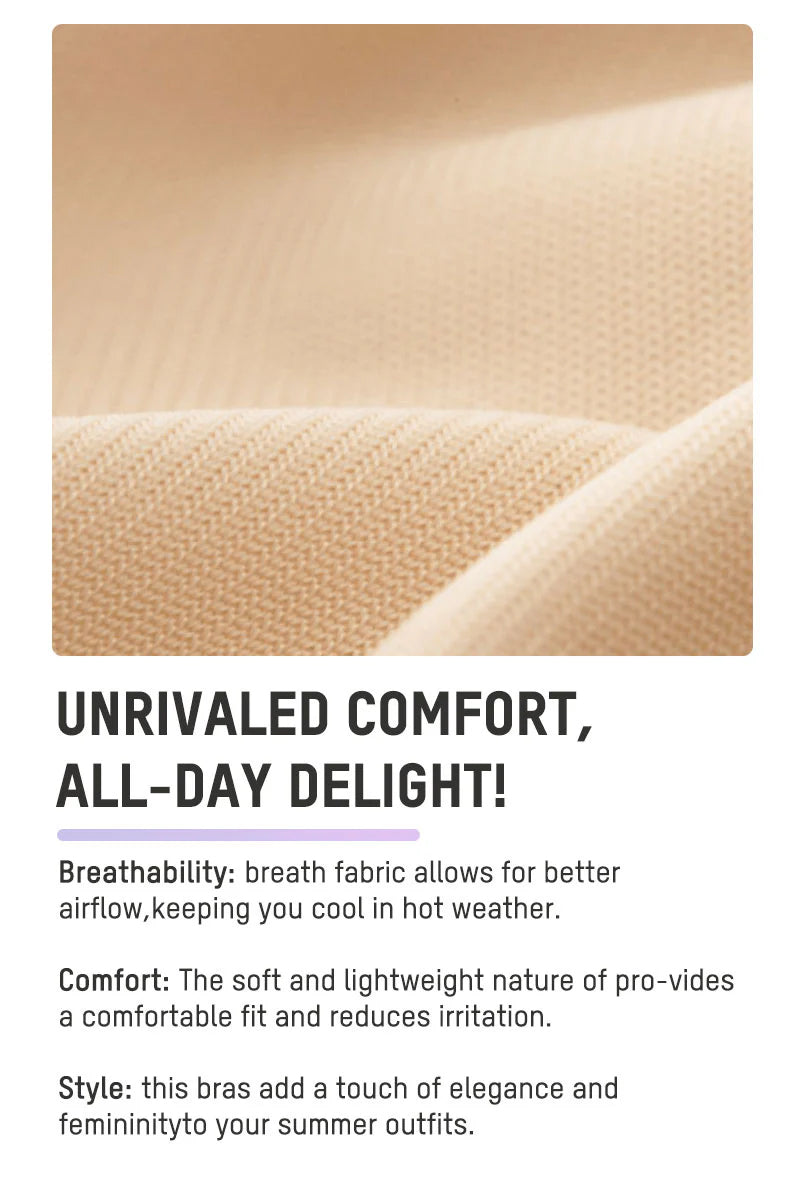 Lightweight Wirelss Bra - 65% nylon and 35% spandex. This bras are crafted from upgraded fabric for an ultra-soft touch, enhanced stretchability, and greater size inclusivity. This bra is highly elastic, comfortable, smooth, and breathable, ensuring unparalleled comfort without any pressure. It's perfect for daily wear, providing a "no feeling" sensation.
