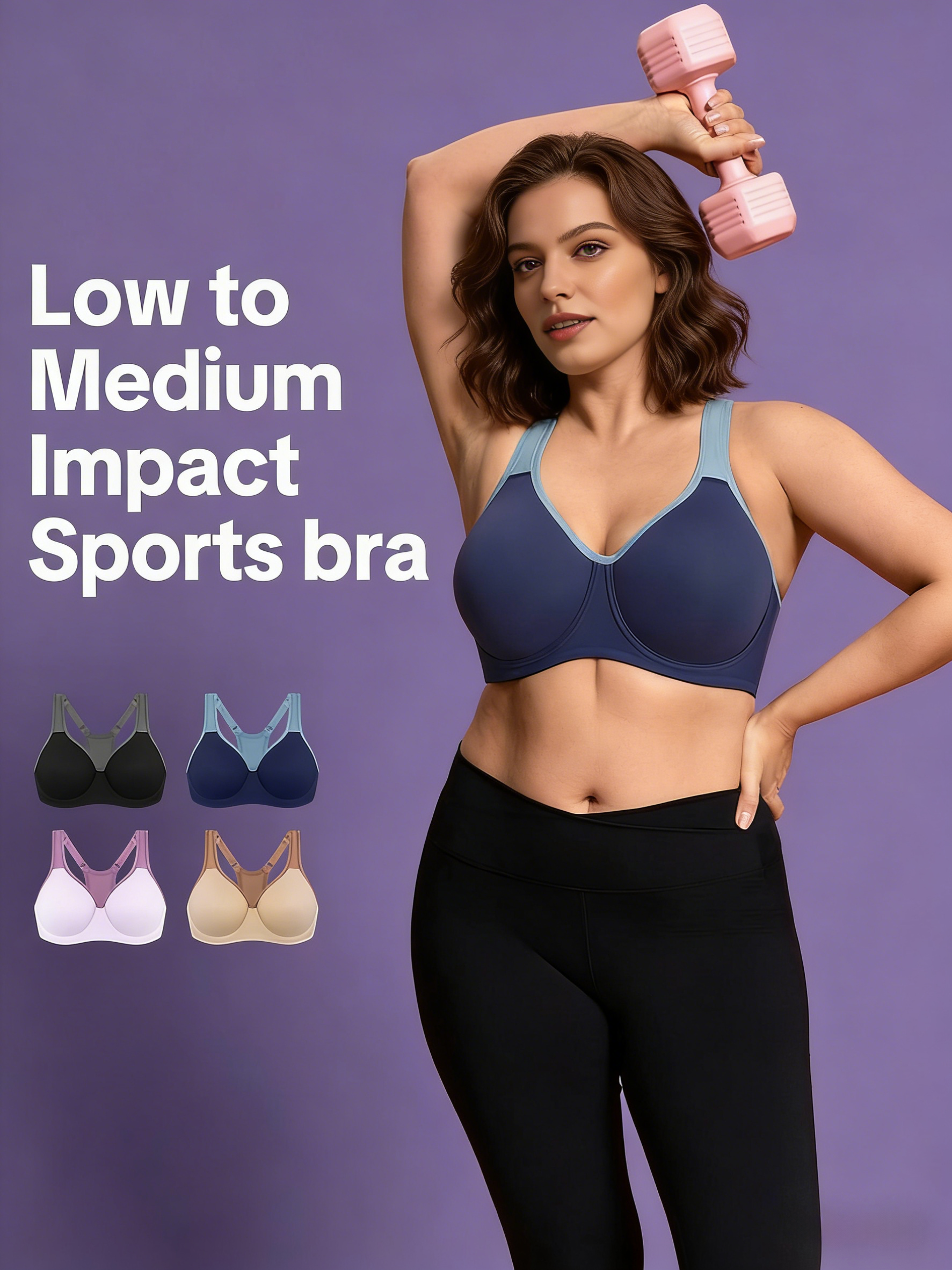 • Soft Support Non-padded Unlined Full Coverage Wide Strap Outside Underwire Sports Bra