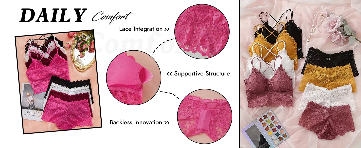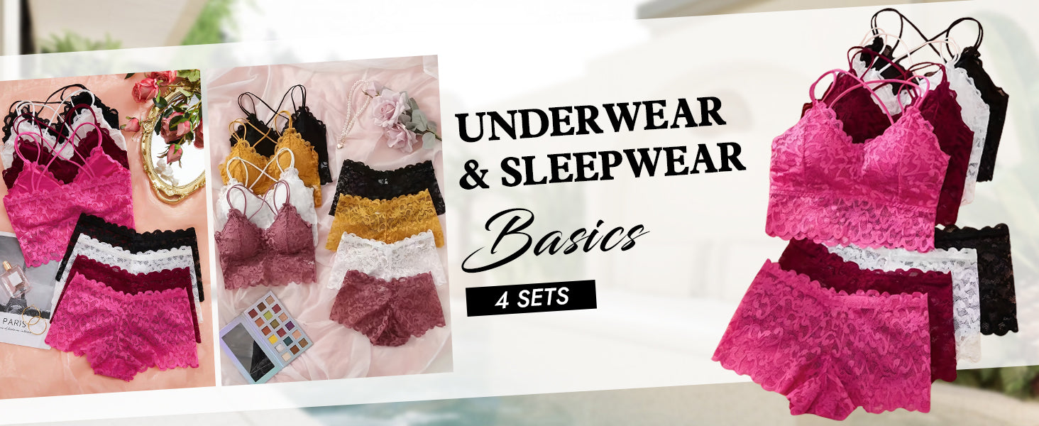 • Underwear&Sleepwear Basics 4sets Lace Wireless Bra And Panty Set Lingerie Set