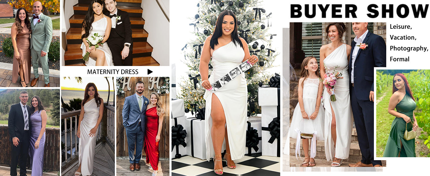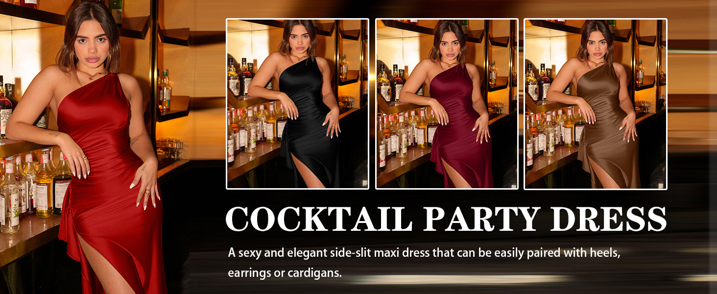 - Feature:With draped detailing and one shoulder design,the maxi dress sweeps the floor and is complete with a high split,adjustable back strap detail.