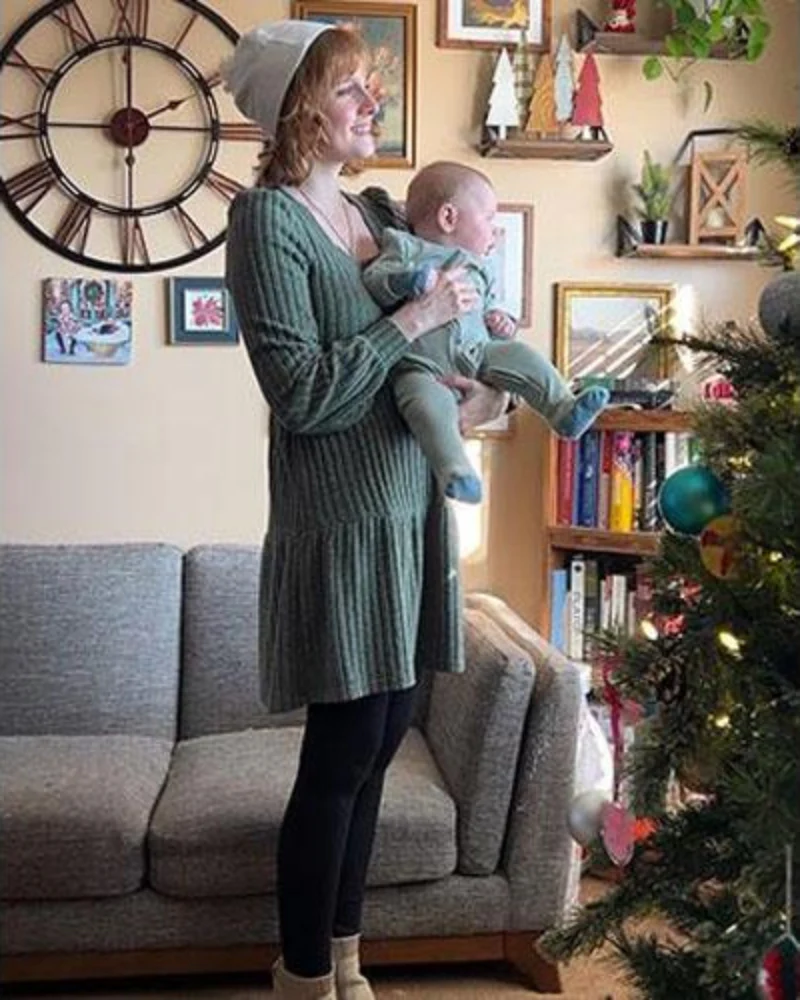 Womens Square Neck Long Sleeve Fall Dresses Casual Babydoll Sweater Dress