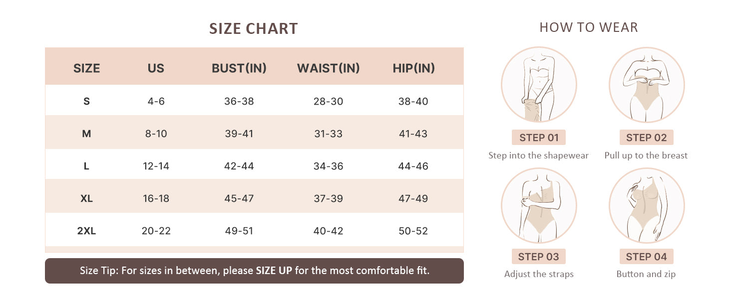 Size Guide For Optimal Fit: Available in sizes S to 2XL, these body suits for womens adapt to diverse body types. If between sizes, choose one up for comfort-fit shaping.