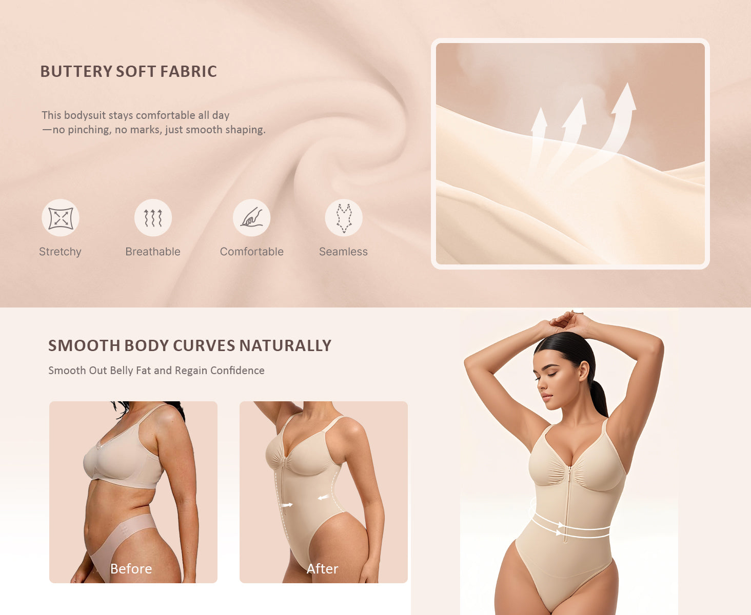 Sleek Waist & Tummy Definition: Dual-layer abdominal panel offers lightweight tummy control while smoothing curves—subtle body shaper tech without compression.