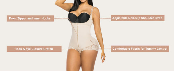 U-SHAPE OPEN BUST BODYSUITS : The faja shapewear adopts special front U-type anti-droop open bust design to pair with your own bra, allowing for fit flexibility and helps push up your breasts. Effectively tighten and control loose fat under the armpits and back.Adjustable and detachable non-slip wide shoulder straps increase comfort and fit your shoulders, reducing shoulder pressure.The front zipper opens and closes and has an inner hook to make it easier to put on & take off.