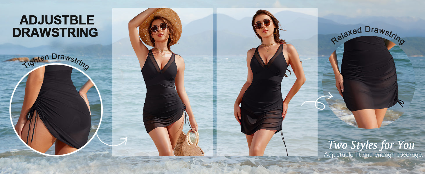 • Slimming Mesh Sheer Sarong Wraps Bathing Suit
