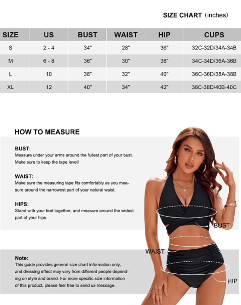 • Unique Design: This high waisted bikini are designed with a self tie halter top, high waist bottom with ruched detail, trendy and figure flattering. The full coverage bikini bottom could be pulled up to cover your belly button, making you keep elegant in this bikini sets in a flattering way.