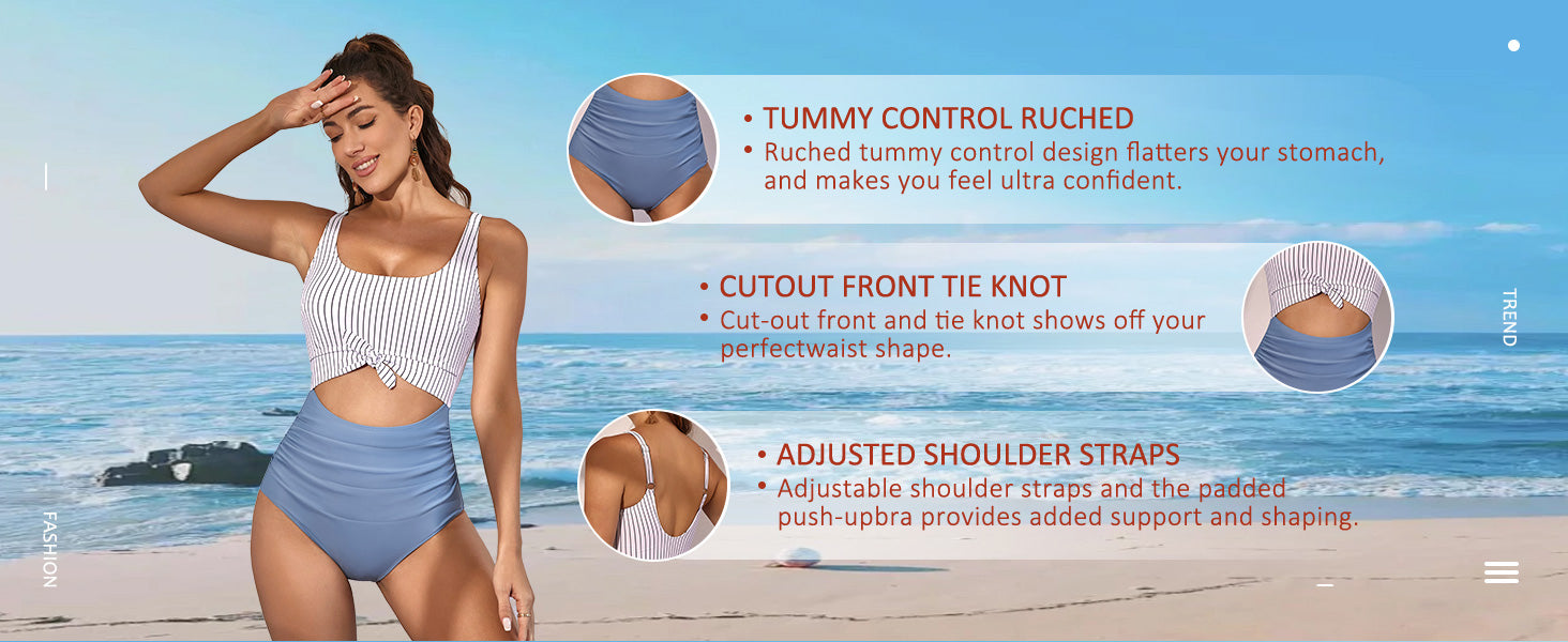 Adjustable shoulder straps and a padded push-up bra deliver extra lift and a secure, custom fit for all-day wear.Chic Cutout with Front Tie Knot